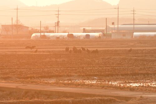 2月23日。 朝から快晴の鳥見日より。 まずは大量のクロハゲワシから。 朝焼けの中のクロハゲワシたち。 なかなかいい。 前日は雨に濡れてさっぱりだったけど、晴れたらこんなに雰囲気も違って見える 気温も高くなってくると上昇気流が起きやすくなるのか…