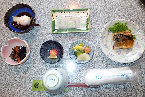 4月20日。 出張最終日。 朝食から紹介。厳原でいつも泊まる「柳屋ほてる」の朝食。 いつものメンバー。 サバの塩焼き。大好物。 温泉卵。生卵の時もあるし、温泉卵の時もある。 味噌汁。ここの味噌汁もとても美味しくお勧め。 漬け物&明太コンビ。一仕事…