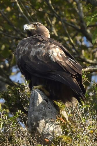 10月2日。 イヌワシを観察に連れて行ってもらった日記。その6。 イヌワシをかなり堪能して満足していると、なんと背後の山にイヌワシがいると。 少し移動して上を見上げるとなんとイヌワシが座っている。 嘘みたいな光景。 イヌワシ。置物ではない。 凛…