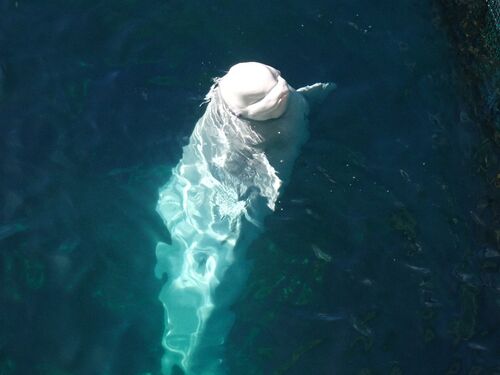 3月10日。 関東へ遠征した日記。その20。 午前中の魚見学、イルカショー見学を終えて昼飯を食べたあとは、 またイルカショーへ。本日2回目の見学。 そこへ行く前にシロイルカが可愛かったので激写。 白くてでっかくて可愛い。 これはアイドルになるはず…