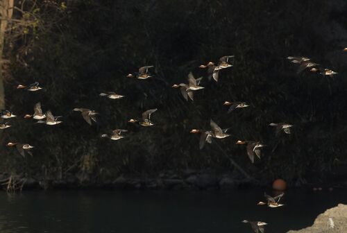 1月5日。 実家の近所に鳥見に行った日記。 この日も実家近くの河原へ鳥見にに行ってみた。 川の中流にオシドリがいた。 飛翔写真。 山へ行って車の中でクマタカを待っていると、アオバトが群れで飛びまわっていた。