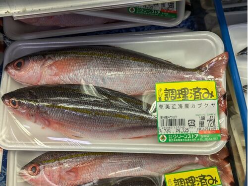 7月23日。 奄美大島へ行った日記。その2。 着いたその日は奄美の同僚の若い女子と懇親会。 その前にスーパーへ寄ってみた。 相変わらず面白い魚など並んでいた。 「かぶくや」 初めて見る魚。食べてみたかったなあ。 「赤松」 これは煮つけにしたら美味…